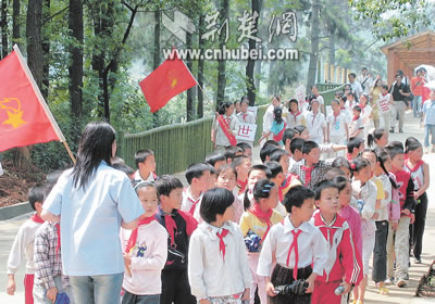 昨日,武漢市洪山區(qū)九峰鄉(xiāng)1700多名小學(xué)生興高采烈地來(lái)到武漢九峰鄉(xiāng)森林動(dòng)物園,參加別開(kāi)生面的慶“六一”活動(dòng)。孩子們?cè)凇叭恕?dòng)物·未來(lái)”百米長(zhǎng)卷上簽名,以表示愛(ài)綠色家園,創(chuàng)美好明天的決心。這是孩子們游園的情景。