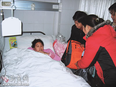 荊楚網(wǎng)消息(湖北日報)記者崔逾瑜、藍(lán)海、通訊員李軍華報道:昨日,湖北日報報業(yè)集團(tuán)派人前往京山縣人民醫(yī)院看望小楊青,帶去了集團(tuán)職工的慰問和熱心讀者的祝福,并將募集的4.2萬元捐款交到了楊青父親手中。