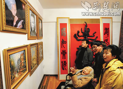 漢口一戶居民家庭藝術(shù)展賀慈母92歲生日(圖)