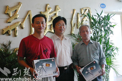 兩位獲2800元手機(jī)大獎的幸運(yùn)讀者與荊楚網(wǎng)副總編輯合影