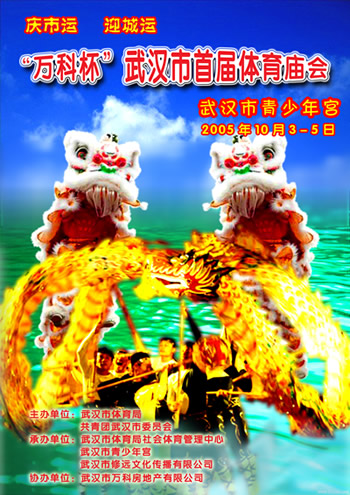 “萬科杯”武漢市首屆體育廟會將以“慶市運、迎城運,弘揚體育傳統,豐富市民生活”為主題,秉承“體育精華表演為主,市民廣泛參與互動”的原則,分為水上表演,馬文化表演,武術絕技表演,健康家庭才藝展示,民間時尚體育表演,趣味體育互動游戲,體育產品、服務、地產、家裝及其它展示等七大活動板塊。廟會采用廣大民眾喜聞樂見的互動開放形式,將邀請部分國際棋牌大師、武林宗師、知名運動員和教練出席表演和互動活動,并安排了武漢市時尚體育極限運動表演、體育知識問答、體育舞蹈等三十多項活動。整個體育廟會活動集知識性、競技性、參與性、趣味性于一體。此外,由武漢市體育局提供的國民體質測試車,將免費為市民進行體質測試和運動咨詢。