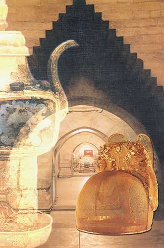 嵌玉龍、寶石金酒注:酒器(左,高21.8厘米) 金翼善冠:儀仗用具(右,高24匣米)[相關(guān)鏈接]:20世紀(jì)中國百項考古大發(fā)現(xiàn)(1-20)20世紀(jì)中國百項考古大發(fā)現(xiàn)(21-40)20世紀(jì)中國百項考古大發(fā)現(xiàn)(41-60)20世紀(jì)中國百項考古大發(fā)現(xiàn)(61-70)20世紀(jì)中國百項考古大發(fā)現(xiàn)(71-80)81、云崗石窟(圖)82、龍門石窟(圖)83、敦煌莫高窟(圖)84、龍興寺佛教造像窖藏(圖)85、隋大興唐長安城遺址(圖)86、隋唐洛陽城遺址(圖)87、隋代虞弘墓(圖)88、唐代帝陵陪葬墓(圖)89、法門寺塔基與地宮(圖)90、阿斯塔那墓地(圖)91、渤海上京龍泉府遺址(圖) 92、南唐二陵(圖)93、白沙宋墓(圖)94、遼陳國公主墓(圖)95、龍泉青瓷窯址(圖)96、耀州窯遺址(圖) 97、西夏王陵(圖)98、古格故城遺址(圖)99、元大都遺址(圖)100、明定陵(圖)