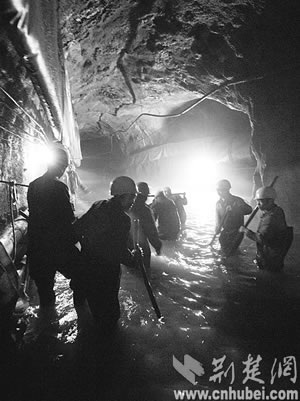 這是一群怎樣的鋼鐵漢子喲!他們兩年中遭遇38次突泥突水,每次大的搶險,都要持續(xù)數(shù)十小時,每次都有10多人暈倒;從開工至今,先后有20多名工人實在頂不住,走掉了,但絕大多數(shù)人沒有向困難低頭,選擇了繼續(xù)戰(zhàn)斗;在掘進工作面上,除了機械設(shè)備,他們身邊還有50多套救生衣、救生圈,1萬多條防水編織袋,甚至還有一只皮劃艇……