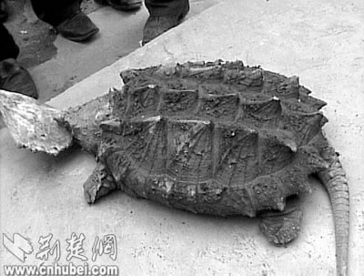 京山發(fā)現(xiàn)長滿犄角大鱉(圖)