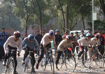 荊楚網(wǎng)消息(記者吳彬彬)2005湖北省第一屆大學(xué)生自行車聯(lián)賽今天上午在華中科技大學(xué)拉開帷幕,共有來自華中科技大學(xué)、中國(guó)地質(zhì)大學(xué)(武漢)、武漢大學(xué)、武漢理工大學(xué)、華中農(nóng)業(yè)大學(xué)、湖北工業(yè)大學(xué)和湖北經(jīng)濟(jì)學(xué)院的23支隊(duì)伍前來參賽。