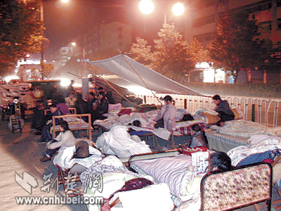 昨晚7時,記者連線武穴市武穴網(wǎng)負責人李曙勝。他告訴記者,武穴目前已經(jīng)恢復了往日的寧靜。從昨天上午開始,到長江大堤上“露營”的數(shù)千名群眾基本上都已經(jīng)搬回家中,城區(qū)商場、酒店、菜市場、電信等生活服務場所,全部恢復正常營業(yè)。昨晚,仍有少數(shù)居民到戶外避震,但大家都在住處附近“扎寨”,有的干脆睡在了貨車里。