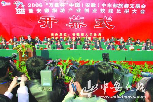 旅游盛會(huì)迎嘉賓,皖風(fēng)徽韻放異彩。121,由省政府主辦、省旅游局承辦的“2006中國(guó)(安徽)中東部旅游交易會(huì)暨安徽旅游產(chǎn)業(yè)創(chuàng)業(yè)技能比拼大會(huì)”在合肥國(guó)際會(huì)展中心隆重開(kāi)幕。省委書(shū)記郭金龍宣布大會(huì)開(kāi)幕,省長(zhǎng)王金山在開(kāi)幕式上致辭。副省長(zhǎng)文海英主持開(kāi)幕式。
