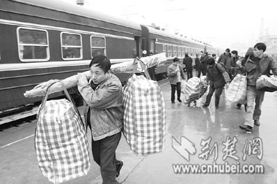 ?10分鐘后,這趟民工專列駛離武昌站,于昨晚20時20分到達(dá)襄樊。據(jù)武昌站介紹,節(jié)前的民工專列多從南方發(fā)往武漢,節(jié)后武漢鐵路局將加開大量南下、東進(jìn)的民工專列。