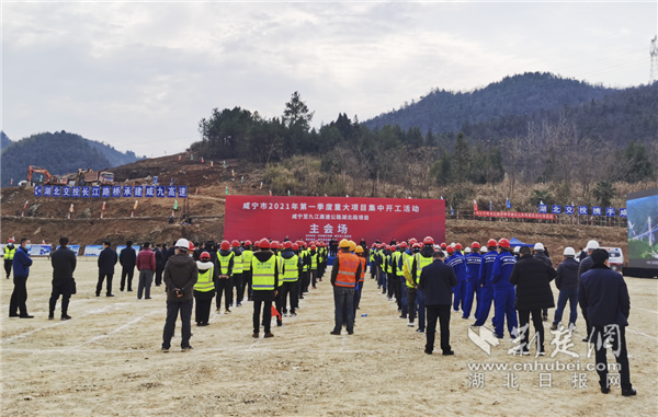 荊楚網(wǎng)客戶端—荊楚網(wǎng)消息(記者趙秀琳 通訊員周漓)1月20日,咸寧市2021年第一季度重大項目集中開工活動舉行,由湖北交投集團投資建設(shè)的咸寧至九江高速公路咸寧段項目開工建設(shè)。