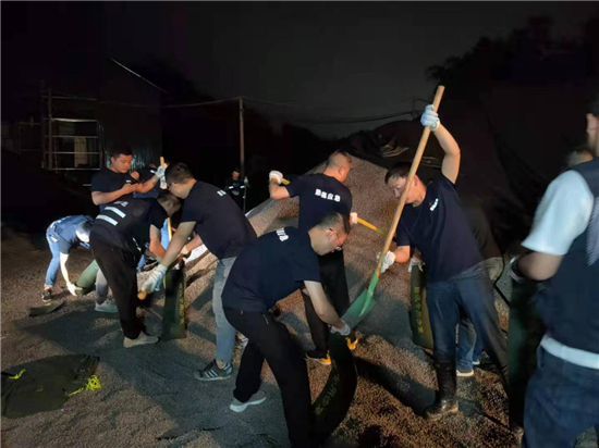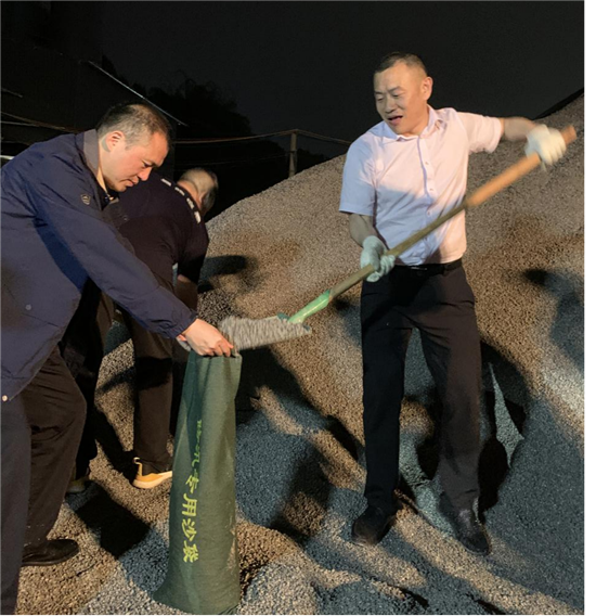 應(yīng)急管理局黨委書記曾偉、局長何榮齊上陣,帶頭裝沙干勁足