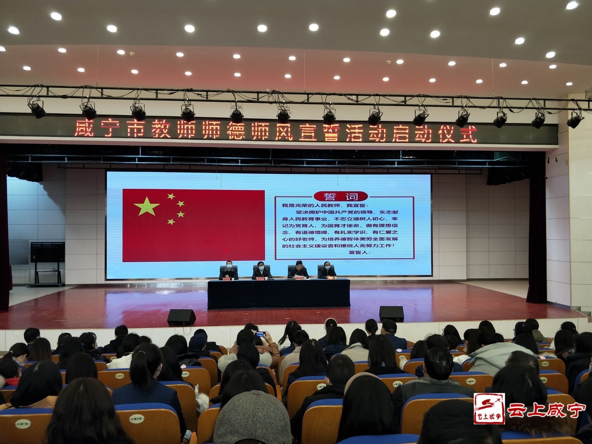 “我是光榮的人民教師,我宣誓……”1月19日上午,啟動(dòng)儀式在市實(shí)驗(yàn)小學(xué)報(bào)告廳舉行,咸寧市溫泉中學(xué)、咸寧市實(shí)驗(yàn)小學(xué)所有在職教師面向國(guó)旗、莊嚴(yán)宣誓:牢記為黨育人、為國(guó)育才使命,做“四有”好老師。