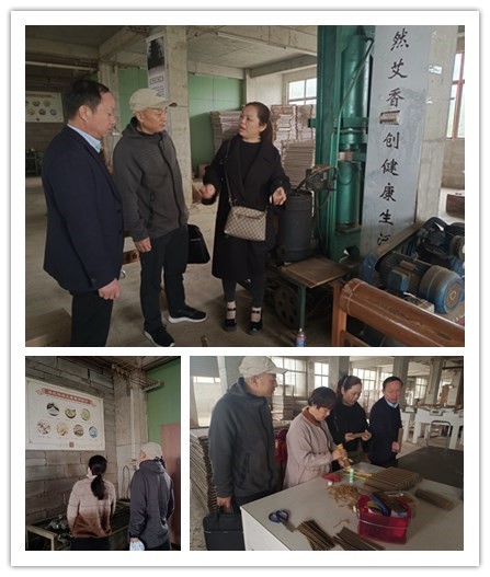 圖為市委統(tǒng)戰(zhàn)部副部長李均亮、市僑聯(lián)主席周子歡一行到“呂氏艾香”車間現(xiàn)場參觀