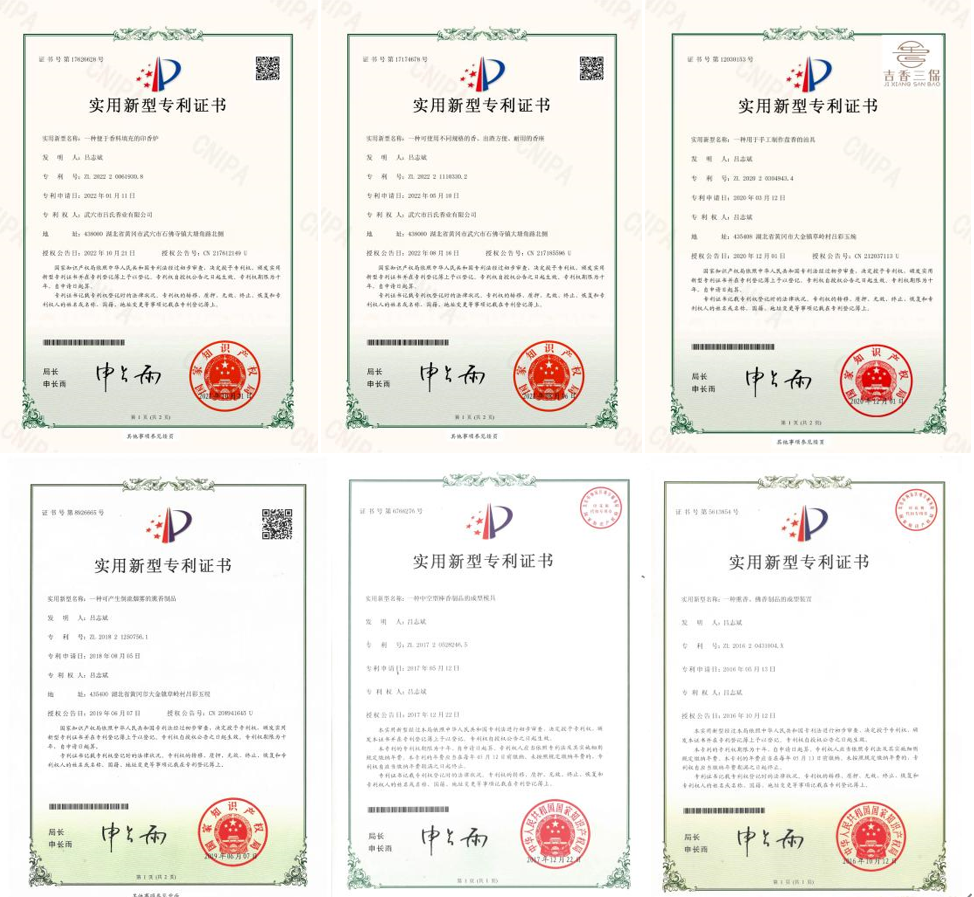 圖為呂志斌在制香領(lǐng)域榮獲多項(xiàng)國家發(fā)明專利