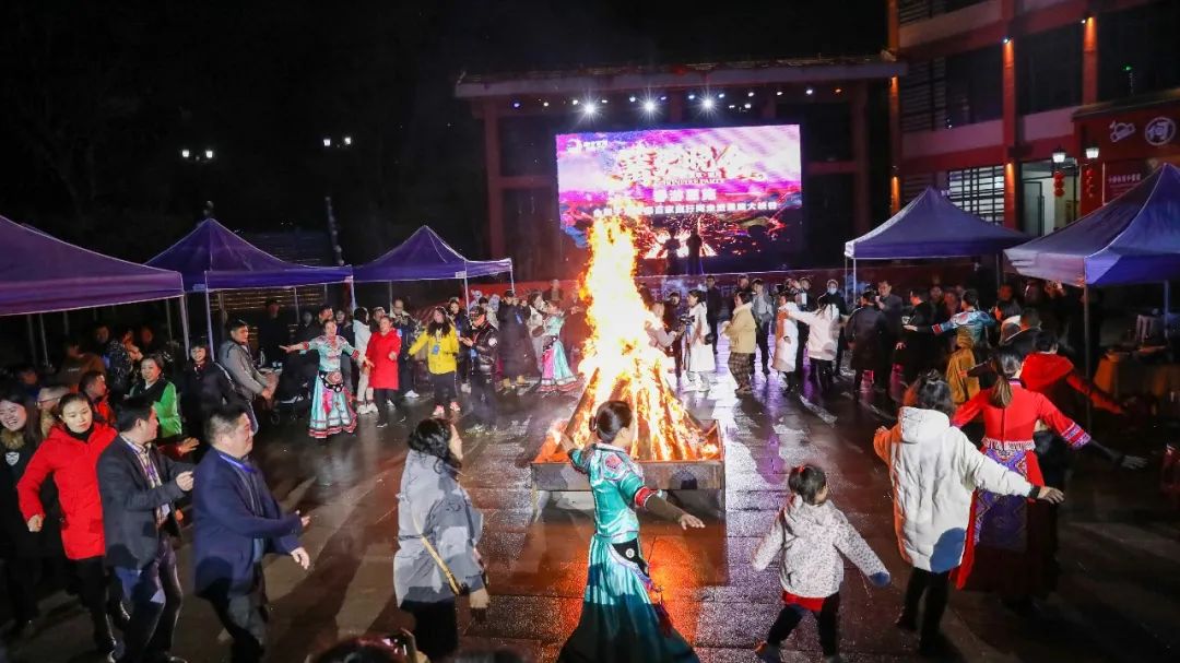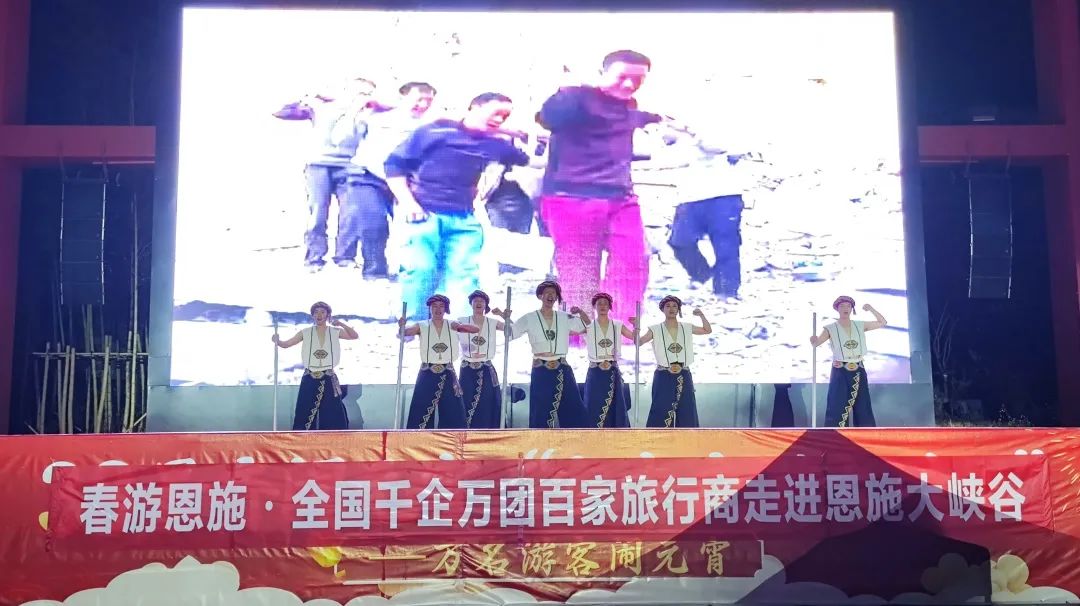 全國(guó)千企萬(wàn)團(tuán)百家旅行商一行抵達(dá)恩施大峽谷景區(qū),入住女兒寨度假酒店。初春的夜晚,恩施大峽谷靜謐的山野顯得更加空靈,晚宴過(guò)后,大家齊聚女兒寨風(fēng)情廣場(chǎng)點(diǎn)燃熊熊的篝火,山歌嘹亮,舞蹈熱情,旅行商們與土家兒女齊跳擺手舞,篝火晚會(huì)現(xiàn)場(chǎng)歡聲一片。