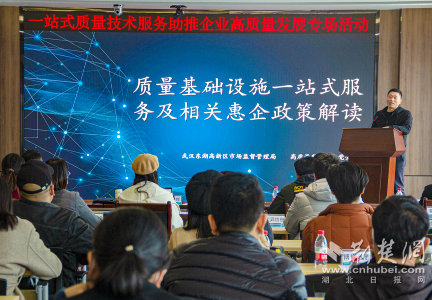 荊楚網(wǎng)(湖北日?qǐng)?bào)網(wǎng))訊(記者劉陽 通訊員胡甜)2月28日,由武漢市東湖高新區(qū)市場(chǎng)監(jiān)管局指導(dǎo),湖北省標(biāo)準(zhǔn)化與質(zhì)量研究院、武漢東湖高新集團(tuán)股份有限公司聯(lián)合主辦,湖北光谷標(biāo)準(zhǔn)創(chuàng)新科技有限公司、武漢科訊智園技術(shù)服務(wù)有限公司等單位承辦的“一站式質(zhì)量技術(shù)服務(wù),助推企業(yè)高質(zhì)量發(fā)展專場(chǎng)活動(dòng)”在武漢軟件新城舉辦。來自東湖高新區(qū)的40余家企業(yè)的50名代表參加了此次活動(dòng)。