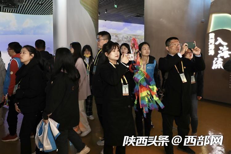 媒體團(tuán)記者參觀九曲黃河漫游館。