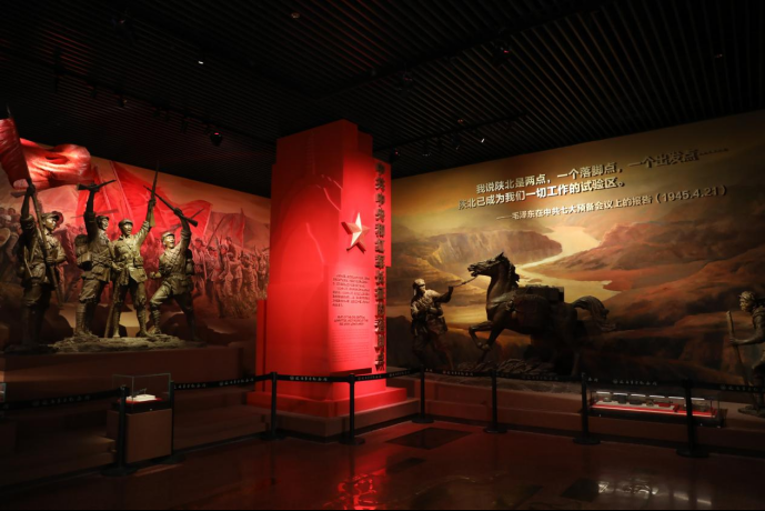 2021年6月30日,延安革命紀(jì)念館第10次陳列提升改造后的基本陳列《偉大歷程——中共中央在延安十三年歷史》重新對(duì)外開(kāi)放。改陳后的《偉大歷程——中共中央在延安十三年歷史》陳列面積達(dá)10677平方米,展線長(zhǎng)度為1200米,共展出珍貴文物2021件(組)、照片900余張,展覽有紅軍長(zhǎng)征勝利到陜北(雕塑)、整風(fēng)學(xué)習(xí)、“窯洞對(duì)”、陜甘寧邊區(qū)參議會(huì)、大生產(chǎn)、群星璀璨(場(chǎng)景)、干部學(xué)習(xí)、轉(zhuǎn)戰(zhàn)陜北(雕塑)、組雕“旗幟”“窯洞對(duì)”等藝術(shù)品場(chǎng)景26項(xiàng),有直羅鎮(zhèn)戰(zhàn)役(3D裸眼技術(shù))、瓦窯堡會(huì)議、紅色電波、延安時(shí)期的對(duì)外交往、延安文藝座談會(huì)、馬欄紙動(dòng)態(tài)制作流程、投豆選舉等科技多媒體互動(dòng)展項(xiàng)40項(xiàng)。