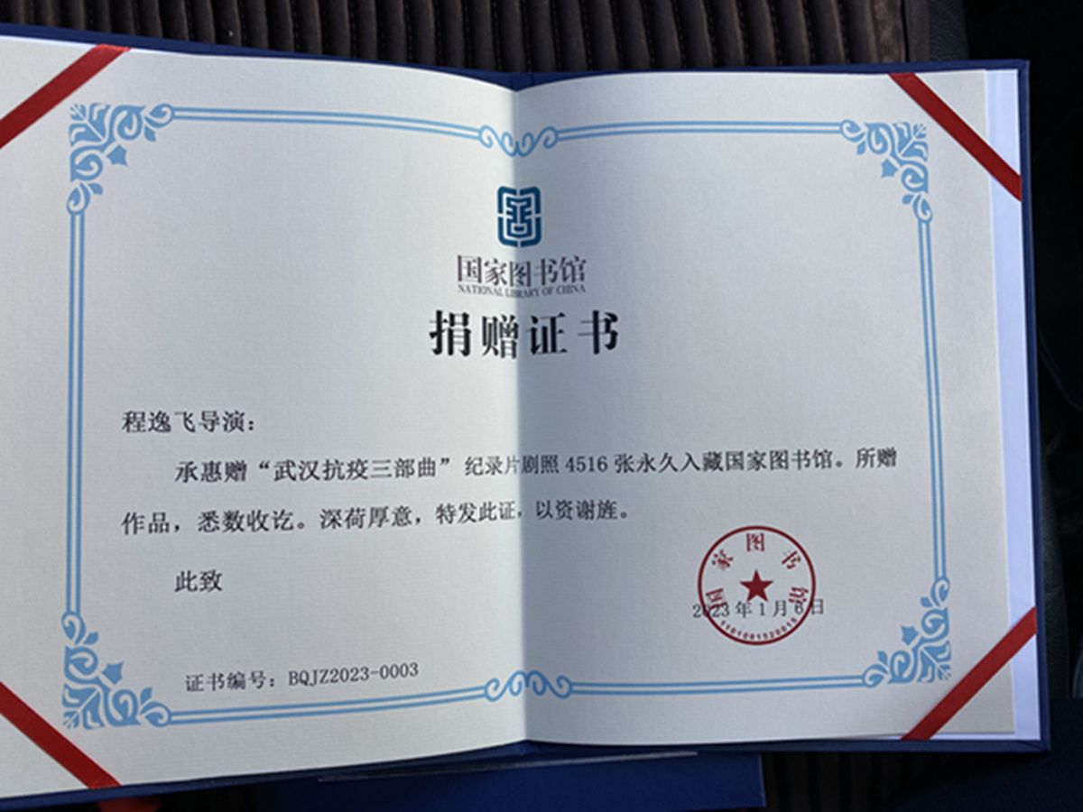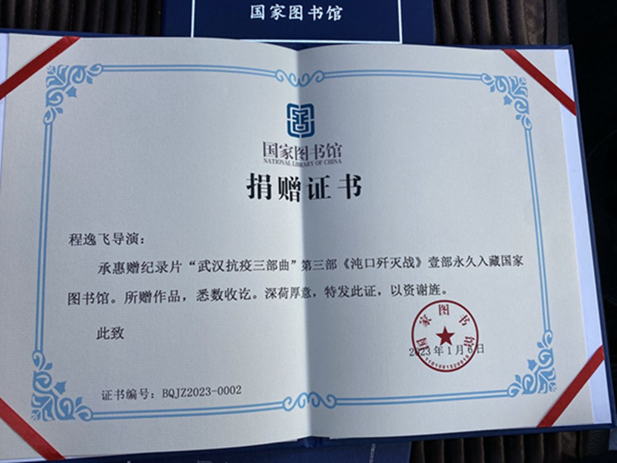 荊楚網(wǎng)(湖北日?qǐng)?bào)網(wǎng))訊(記者 葉輝)5月18日,由程逸飛導(dǎo)演拍攝的《武漢日記》武漢抗疫三部曲(《武漢日記》、《沌口德?tīng)査灉鐟?zhàn)》、《人民至上生命至上》)紀(jì)錄片以及劇照4516張,全部捐贈(zèng)中國(guó)國(guó)家圖書(shū)館,這也是國(guó)家圖書(shū)館發(fā)起的“為國(guó)留史”項(xiàng)目唯一收藏的關(guān)于2020—2021年武漢抗疫的系列紀(jì)實(shí)紀(jì)錄片。