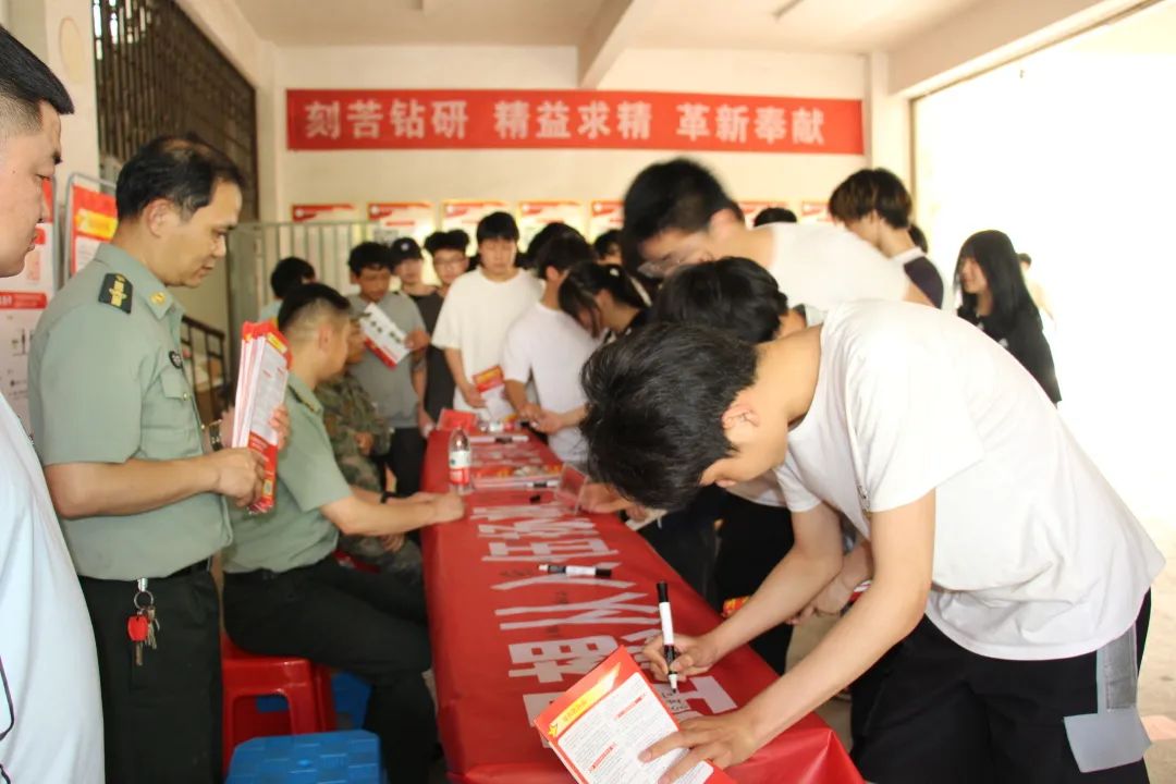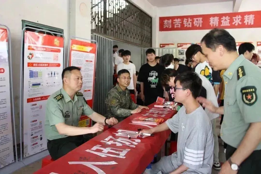 同學(xué)們紛紛在“理想從入伍揚(yáng)帆 人生在部隊(duì)閃光”的條幅前駐足并簽下自己的名字。