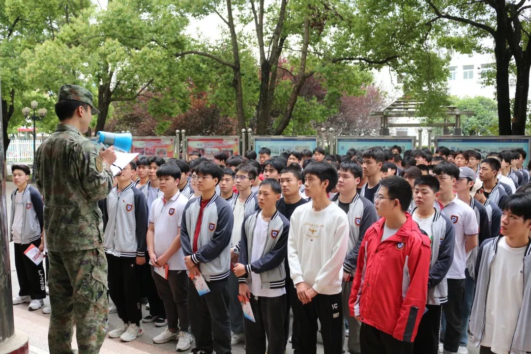 人武部何寶平政委結(jié)合自身從軍三十年的體會(huì),暢談兵之初經(jīng)歷,鼓勵(lì)大家踴躍報(bào)名參軍、報(bào)考軍校,同學(xué)們聽得非常專注。6月下旬填報(bào)高考志愿期間,人武部將再次來學(xué)校進(jìn)行宣傳。
