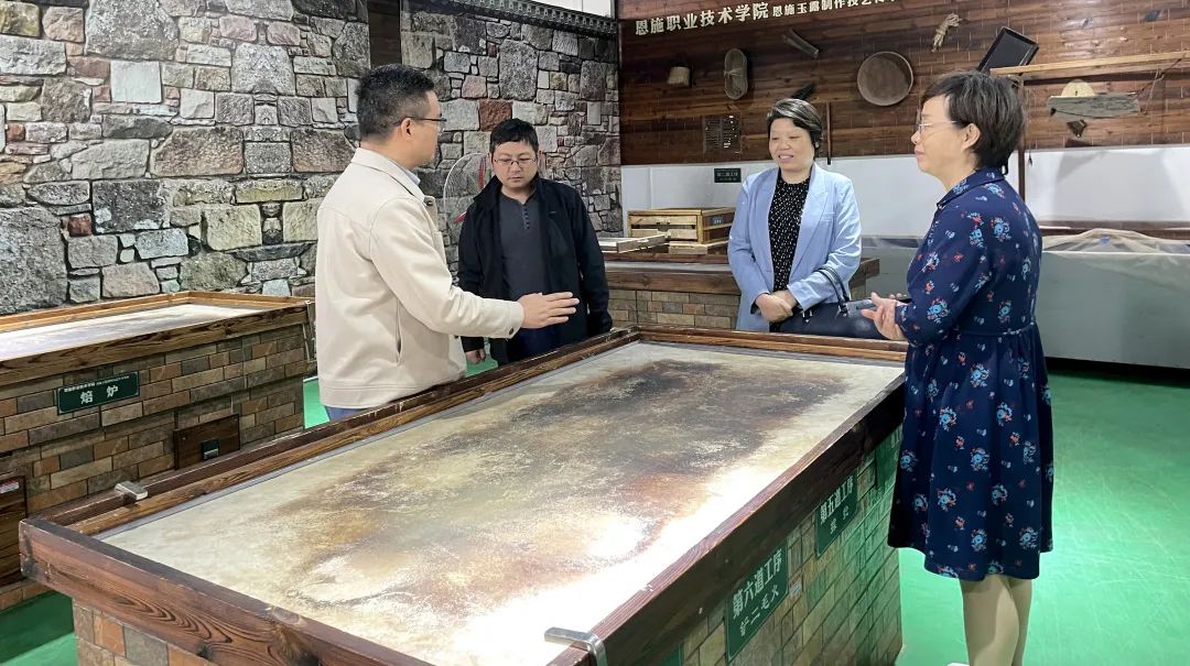 期間,評估小組一行赴恩施職業(yè)技術學院-恩施玉露制作技藝傳承培訓基地現(xiàn)場調(diào)研。隨后,在恩施市非遺中心與恩施市國家級、省級非遺代表性傳承人召開座談會,對恩施市非遺代表性傳承人及傳承基地開展傳承培訓和宣傳推廣工作給予肯定,評估小組一行鼓勵代表性傳承人進一步開展宣傳展示活動,并為寶貴的非物質(zhì)文化遺產(chǎn)項目多培養(yǎng)后繼人才。