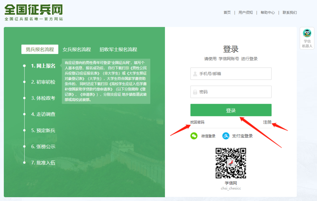 進(jìn)入全國征兵網(wǎng),選擇相應(yīng)的報名入口,點(diǎn)擊應(yīng)征報名,將會跳轉(zhuǎn)到登錄界面。