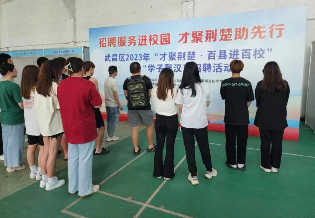 為響應(yīng)省人社廳2023年高校畢業(yè)生等青年就業(yè)創(chuàng)業(yè)十項行動,全力支持高校畢業(yè)生留鄂來鄂就業(yè)的號召,“才聚荊楚·百縣進百校”在武昌區(qū)相關(guān)職能部門的推進下有序進行。武昌作為高校畢業(yè)生就業(yè)意愿較高的地區(qū),一直受到學(xué)子的關(guān)注。本次招聘活動吸引了眾多求職學(xué)子前來參加。