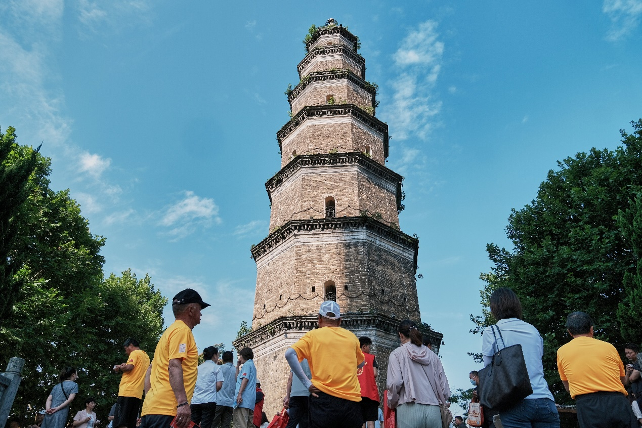 活動(dòng)期間,來(lái)自全國(guó)各地的參賽選手跟隨著講解員,一路參觀了天然塔、猇亭古碼頭等地,并在“感知?dú)v史 會(huì)游中國(guó)”的打卡點(diǎn)下紛紛合影留念。