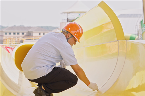 三伏天正午的太陽格外毒辣與刺眼,“熱浪”襲人,檢驗員仍頂著烈日,穿梭在各種游樂設施間,檢驗員擦著臉上的汗珠向記者打趣到:“每次檢驗完回去,微信步數(shù)都在兩萬多,天氣是真的熱,檢驗下來都得喝六七瓶水,有時候真想一頭扎進泳池里!”