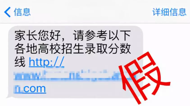 詐騙分子通過短信發(fā)送虛假查詢網(wǎng)址,哄騙考生輸入姓名、考號(hào)、手機(jī)號(hào)、銀行賬號(hào)等信息后,將這些信息販賣或者根據(jù)這些信息進(jìn)行精準(zhǔn)詐騙。