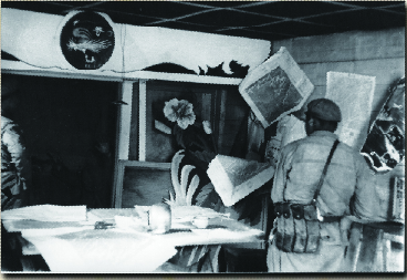 1953年7月13日,志愿軍第68軍203師607團(tuán)偵察排副排長(zhǎng)楊育才帶領(lǐng)偵察班,化裝成南朝鮮軍,向敵縱深穿插。路上冒雨涉險(xiǎn),抓俘虜,得口令,巧妙通過(guò)敵人崗卡,直搗二青洞南朝鮮首都第1團(tuán)(“白虎團(tuán)”)團(tuán)部,繳獲李承晚親自授予“白虎團(tuán)”的“優(yōu)勝”虎頭旗,打亂了該團(tuán)的指揮體系。