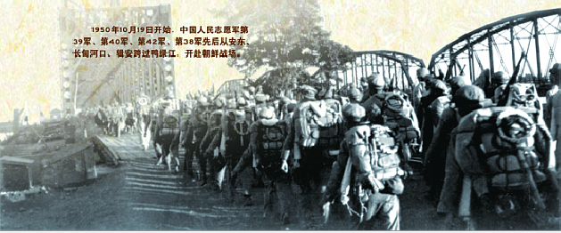 從1950年10月19日開(kāi)始,中國(guó)人民志愿軍第39軍、40軍、42軍、38軍先后從安東(今丹東)、長(zhǎng)甸河口、輯安(今集安)跨過(guò)鴨綠江,開(kāi)赴朝鮮戰(zhàn)場(chǎng)。