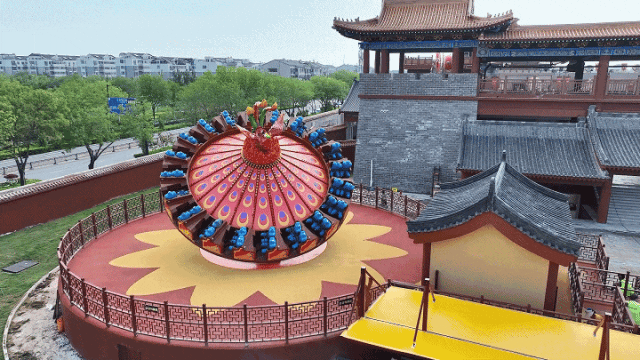 《鳳舞九天》飛天轉(zhuǎn)盤游樂項目,不僅外觀精美,而且體驗感極強!鳳凰同風(fēng)起飛于九天之上,拍打著它的羽翼,漸漸遠(yuǎn)去杳無蹤跡。座艙在360°公轉(zhuǎn)的同時又有規(guī)律的偏心旋轉(zhuǎn),讓你擁有如鳳凰飛翔般的非凡體驗。