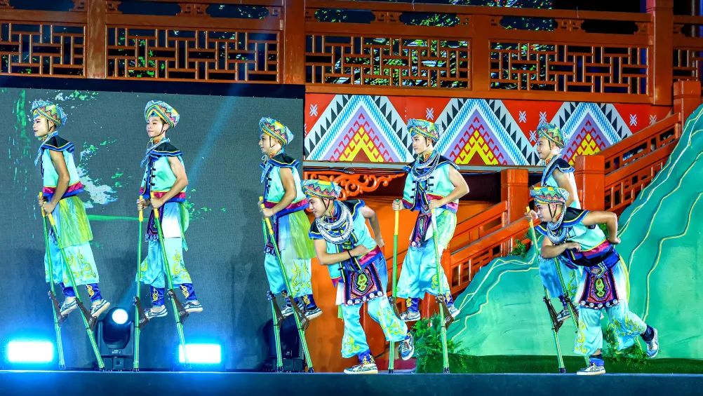 舞臺(tái)上,演員們或高亢激昂,或柔美動(dòng)人,或歡快跳躍,或深情款款,藝術(shù)性、民族性和地域性完美融合,加上燈光、煙霧、投影等特效,極致的情景表演讓數(shù)千現(xiàn)場(chǎng)觀眾為之沉醉,在一片喜慶祥和的氛圍中共同慶祝恩施州土家族苗族自治州成立四十周年。