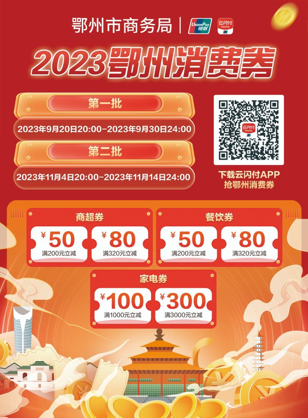 鄂州1400萬元零售、餐飲消費券