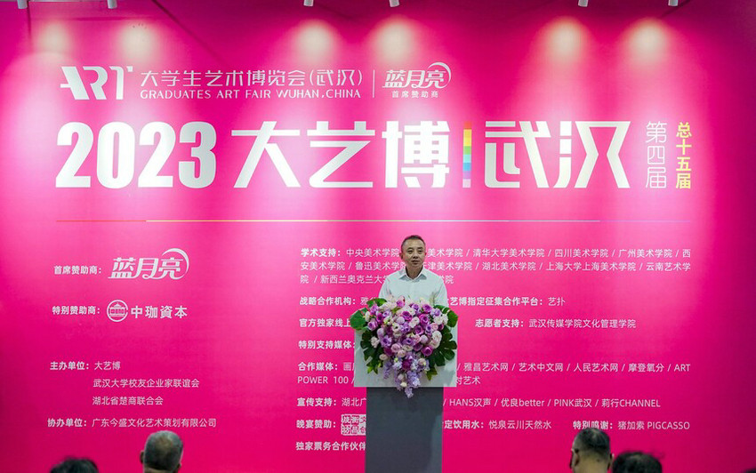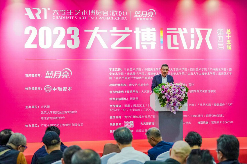 武漢大藝博文化藝術(shù)發(fā)展有限公司董事長(zhǎng)李亦非代表大藝博組委會(huì)、主辦方致辭