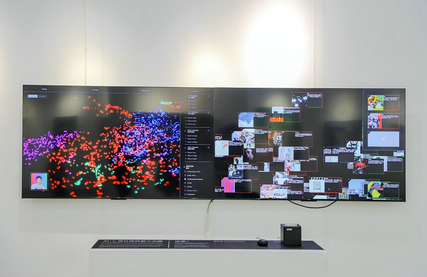 在藝術(shù)與科技深度融合的浪潮下,今年交互裝置、多媒體影像類參展作品的表現(xiàn)令人欣喜。藝術(shù)家們運(yùn)用多媒體、AI編程、動(dòng)態(tài)捕捉技術(shù)、AI繪畫(huà)等技術(shù)手段進(jìn)行創(chuàng)作的探索實(shí)踐,從觀念到實(shí)現(xiàn)方式讓人耳目一新,互動(dòng)性也更強(qiáng)。