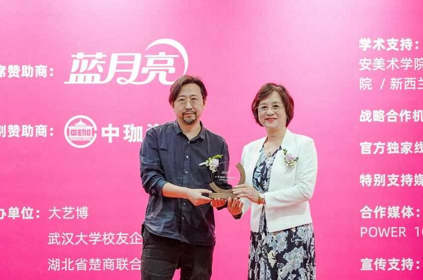 大藝博組委會(huì)特邀湖北美術(shù)學(xué)院副院長(zhǎng)張煉作為頒獎(jiǎng)嘉賓,向藍(lán)月亮頒發(fā)“十年相伴·藝路同行”特別榮譽(yù)紀(jì)念獎(jiǎng)