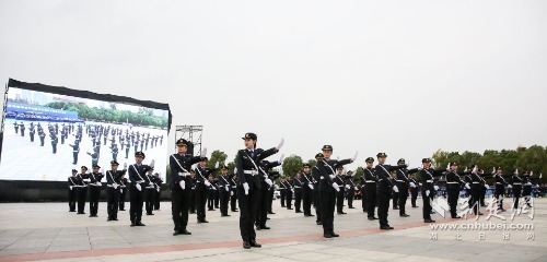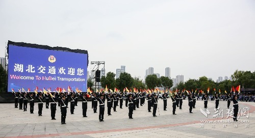 在執(zhí)法方陣展示項(xiàng)目中,22個(gè)執(zhí)法支隊(duì)組成的隊(duì)列、交通指揮手勢(shì)和旗語3個(gè)執(zhí)法方陣分別進(jìn)行了展示。隊(duì)列方陣英姿颯爽步伐一致,展示出了執(zhí)法隊(duì)伍的團(tuán)隊(duì)精神和組織紀(jì)律;交通指揮手勢(shì)方陣整齊劃一、動(dòng)作精準(zhǔn),展示出了執(zhí)法隊(duì)伍的專業(yè)素養(yǎng)和過硬本領(lǐng)。旗語方陣則展現(xiàn)了水上交通執(zhí)法通過旗幟進(jìn)行信息傳遞的通信手段,在演示完基礎(chǔ)旗語動(dòng)作后,通過旗語打出了Welcome To HuBei Transportation的短語縮寫,意思是“湖北交通歡迎您”。