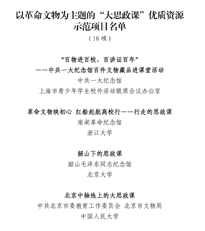 以革命文物為主題的“大思政課”優(yōu)質(zhì)資源示范項目名單正式發(fā)布