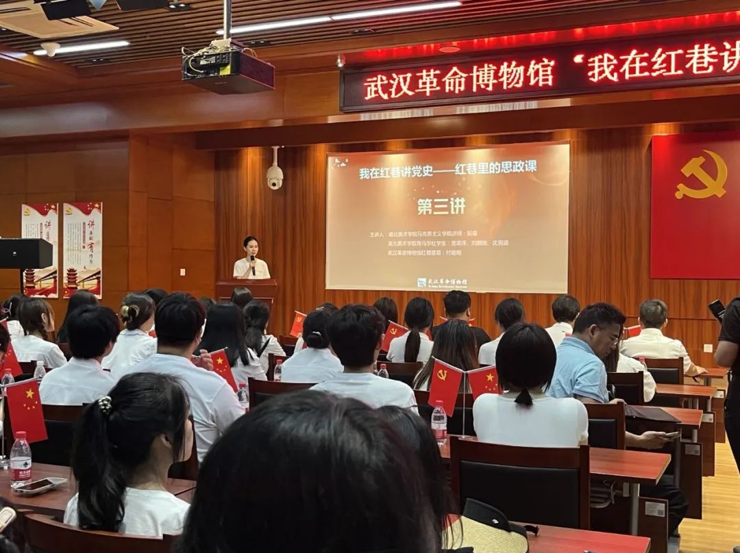 “紅巷里的思政課”是武漢革命博物館充分發(fā)揮全國“大思政課”實踐教學(xué)基地作用,依托紅色文化資源,聯(lián)合武漢大學(xué)、華中科技大學(xué)、華中師范大學(xué)、湖北大學(xué)等九所高校的馬克思主義學(xué)院共同打造的創(chuàng)新型教育實踐項目。項目把“思政課”搬進博物館,以紅巷思政理論課、紅巷青馬微宣講、紅巷苗苗故事匯、“武漢1927”沉浸式思政課為核心教學(xué)內(nèi)容,每月一講,為廣大觀眾提供了學(xué)黨史促交流的平臺,使“思政小課堂”和“社會大課堂”緊密銜接,大中小學(xué)師生和社會觀眾同頻共振,營造了濃厚的學(xué)思踐悟?qū)嵺`教育氛圍。自開課以來,場場爆滿,觀眾好評如潮。