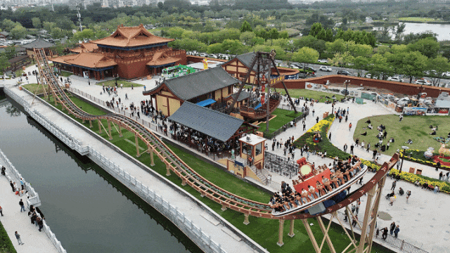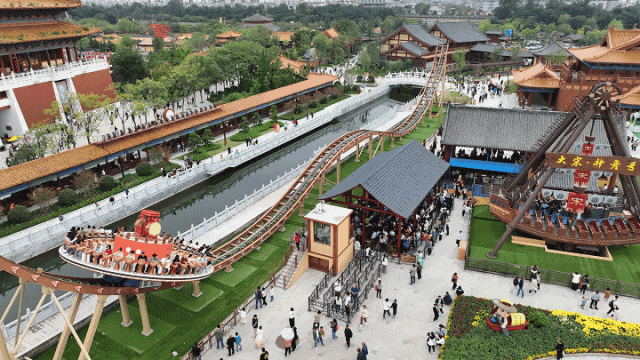 “龍騰鼓舞”游樂設(shè)施,增加了宋代擊鼓元素,伴隨音樂節(jié)奏,動感十足,讓游客擁有騰云駕霧的沉浸體驗(yàn),體驗(yàn)高速滑行和舞動旋轉(zhuǎn)的雙重刺激。