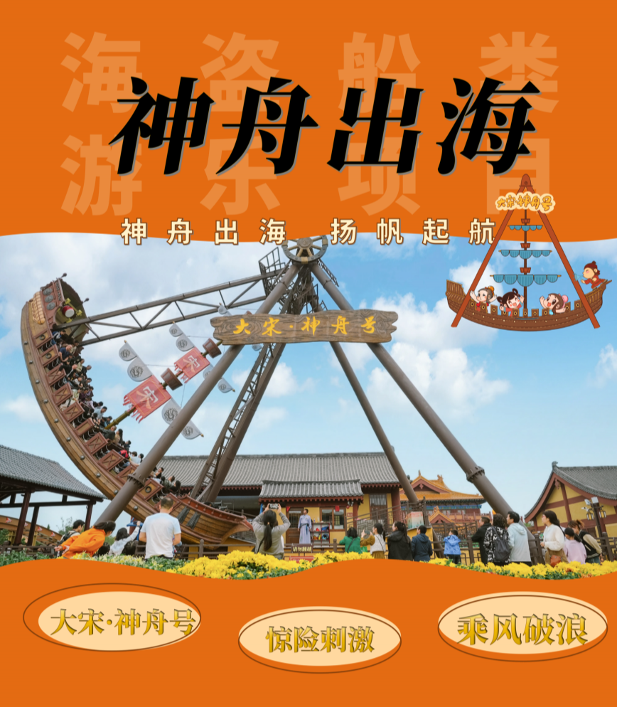 “神舟出海”游樂項(xiàng)目復(fù)原了大宋官方使臣出使海外國家的“神舟”,你可乘坐“大宋·神舟號”與大宋使臣一起揚(yáng)帆起航、乘風(fēng)破浪!