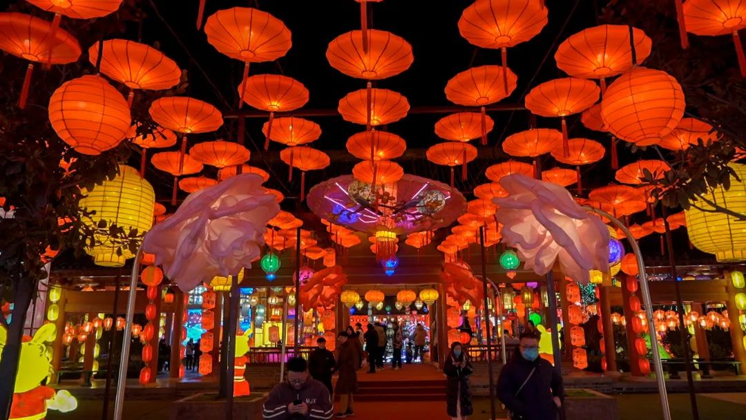 “花燈初上”游樂項(xiàng)目正在全力搭建中,