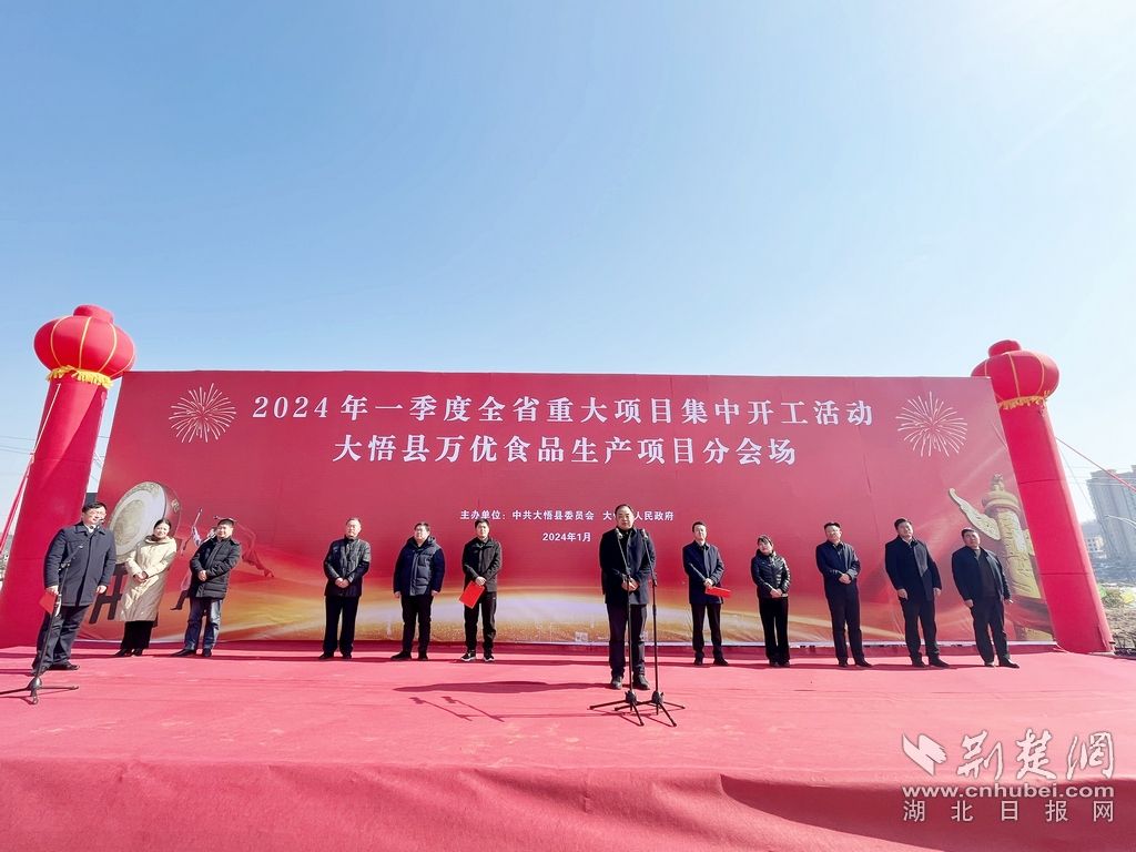 荊楚網(wǎng)(湖北日報網(wǎng))訊(通訊員劉陽)爭先開跑,奮力沖刺“開門紅”。1月25日上午,陽光明媚,暖意融融。2024年一季度全省重大項目集中開工儀式大悟分會場在城關(guān)鎮(zhèn)樂沖精密智造產(chǎn)業(yè)園內(nèi)隆重舉行,萬優(yōu)食品年產(chǎn)2萬噸速凍面米制品項目動工建設(shè)。