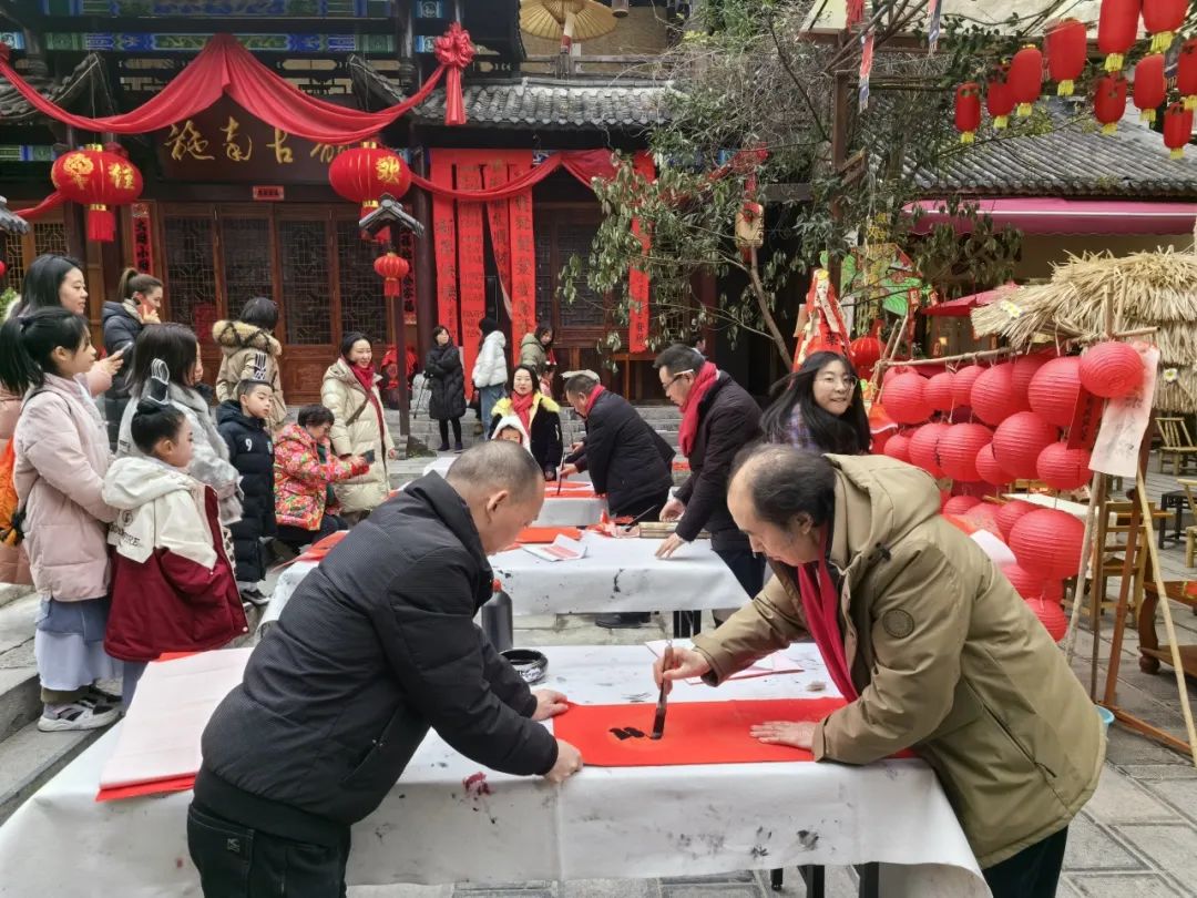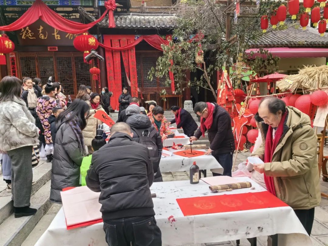 “辰龍送瑞,春聯(lián)送?!薄T谂畠撼欠沁z劇場門口,免費送春聯(lián)活動準時開始。翰墨飄香迎新春,筆墨濃情送祝福,書法老師們揮毫潑墨、凝神動筆,市民朋友圍成環(huán)裝認真觀賞,一時間紅紙翻飛墨香四溢,一副副充滿吉祥如意祝福的手寫春聯(lián)呈現(xiàn)在人們眼前。