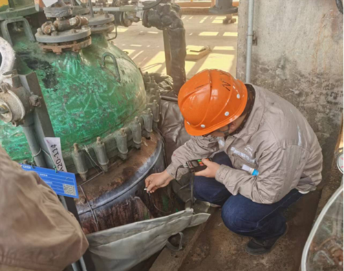 在檢驗(yàn)現(xiàn)場(chǎng),檢驗(yàn)專班合理分工,分成3個(gè)檢驗(yàn)小組,各司其責(zé)、認(rèn)真細(xì)致、高效配合,嚴(yán)格按照相關(guān)規(guī)程,對(duì)特種設(shè)備開展了本體及運(yùn)行狀況檢驗(yàn)、安全附件檢驗(yàn)、壁厚測(cè)定、無損檢測(cè)、搪玻璃層專項(xiàng)檢查等全方位的檢驗(yàn)工作。