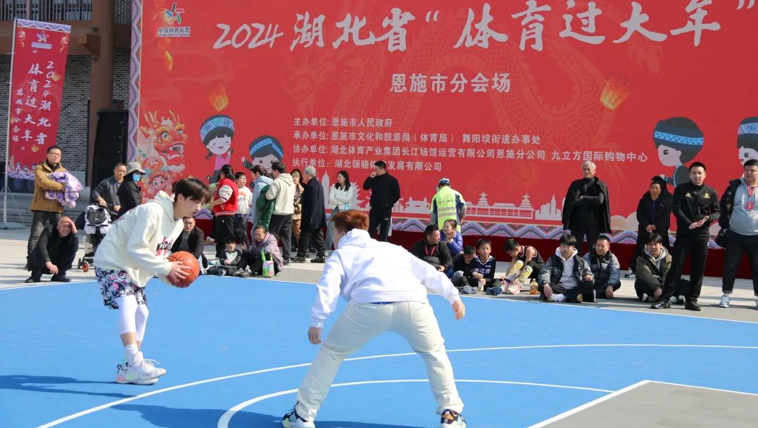 2024湖北省“體育過大年”恩施市分會(huì)場(chǎng)活動(dòng)在恩施市工人文化宮廣場(chǎng)隆重舉辦。啟動(dòng)儀式、競(jìng)技類3v3籃球、親子運(yùn)動(dòng)會(huì)、新春大闖關(guān)、體驗(yàn)類、棋牌類、體質(zhì)達(dá)標(biāo)測(cè)試6大類27小項(xiàng),突出春節(jié)主題活動(dòng)與全民健身、新式與傳統(tǒng)相結(jié)合,融入地方特色,將體育運(yùn)動(dòng)文化內(nèi)涵和全民健身主題與龍年新春佳節(jié)有效融合。