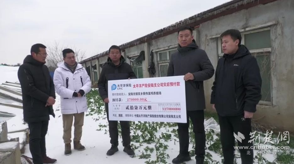 在接官鄉(xiāng)界崗村蛋雞養(yǎng)殖場(chǎng),安陸市農(nóng)業(yè)農(nóng)村局工作人員正帶領(lǐng)太平洋財(cái)產(chǎn)保險(xiǎn)孝感支公司的工作人員對(duì)受災(zāi)養(yǎng)雞場(chǎng)進(jìn)行現(xiàn)場(chǎng)勘查。積雪造成2個(gè)養(yǎng)雞大棚不同程度受損,3萬余只蛋雞死亡。保險(xiǎn)公司立即開通綠色賠付通道,實(shí)行預(yù)賠付機(jī)制,27萬賠付資金直達(dá)農(nóng)戶賬戶,幫助受災(zāi)農(nóng)戶及時(shí)恢復(fù)生產(chǎn)。