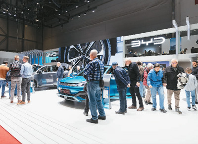 圖為日內(nèi)瓦國際車展上拍攝的比亞迪展臺。新華社記者 孟鼎博攝